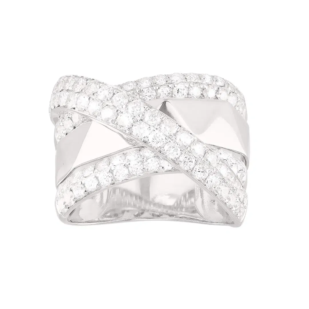 Élégance, glamour, éclatante, cette brillante bague, sertie pour 1,65 carat de diamants, illumine de mille feux, entrecoupée par sa ligne d’or miroir .