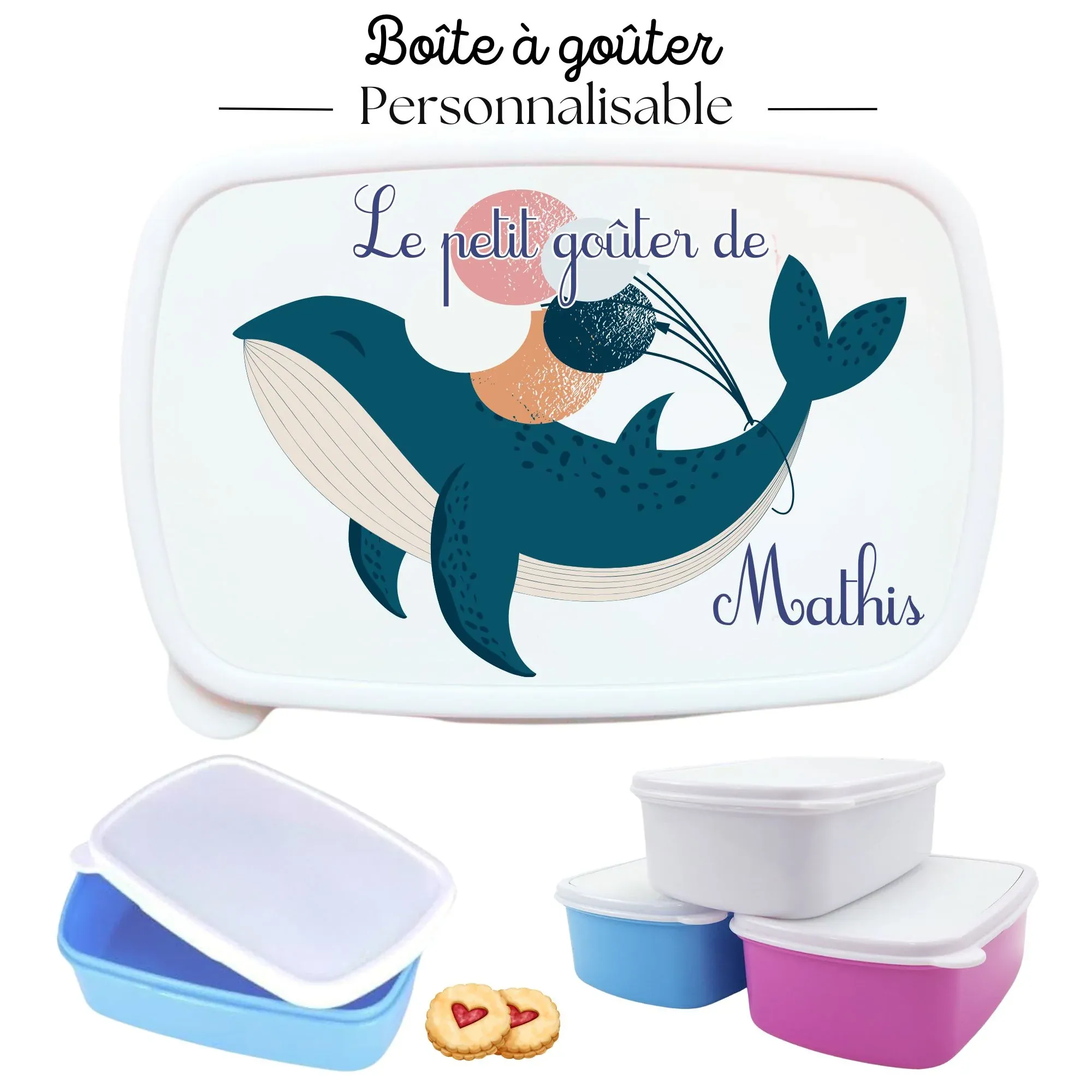 Offrez à votre enfant une boîte à goûter personnalisée, conçue pour capturer l’imagination et ajouter une touche spéciale à chaque repas. Cette boîte est imprimée d’une charmante illustration de baleine bleue, symbolisant la sagesse et l’amitié des océans. Elle est parfaite pour accompagner les petits aventuriers dans leurs journées scolaires ou lors de sorties en famille.