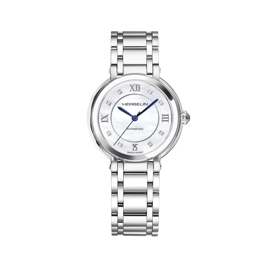 La maison horlogère Herbelin sort une nouvelle collection : Galet. Ce nouveau modèle au mouvement automatique est un mélange entre classicisme et modernité. Une véritable montre-bracelet tout en acier inoxydable qui habillera avec élégance et délicatesse les poignets féminins. Le cadran en argent blanc guilloché est ponctué de chiffres romains donnant une allure chic à la lecture du temps. Galet est une montre délicate et épurée.