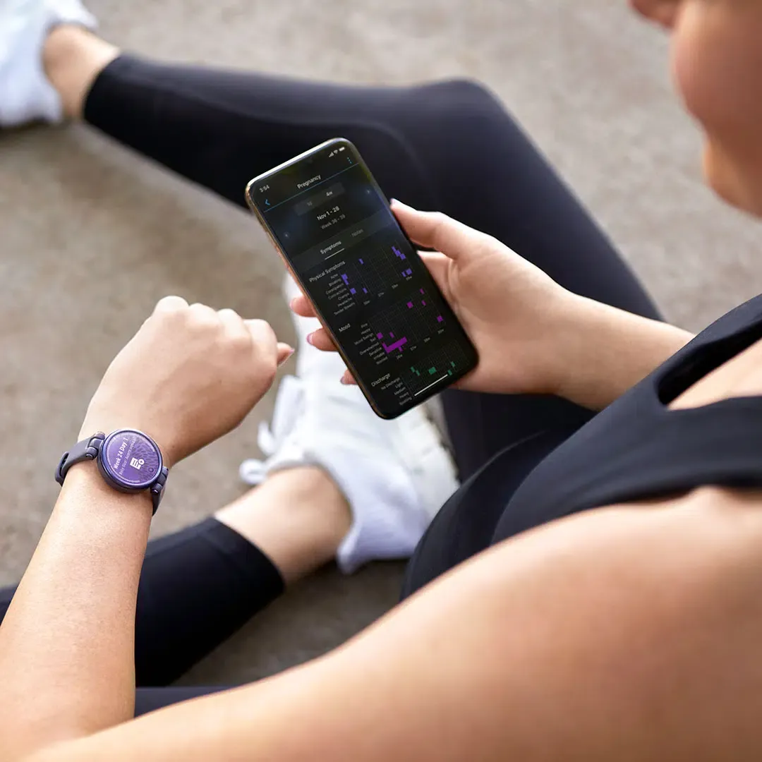 Utilisez l’application Garmin Connect™ pour suivre votre cycle menstruel ou votre grossesse. Enregistrez les symptômes, recevez des conseils d’entraînement et d’alimentation, et plus encore. Ayez tous les détails à portée de main.