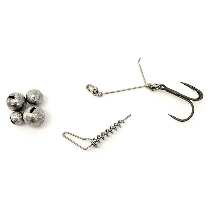 Il est composé d’un screw, de quatre plombs (5, 10, 15 et 20 g) et d’un stinger armé d’un hameçon triple BKK 2/0.