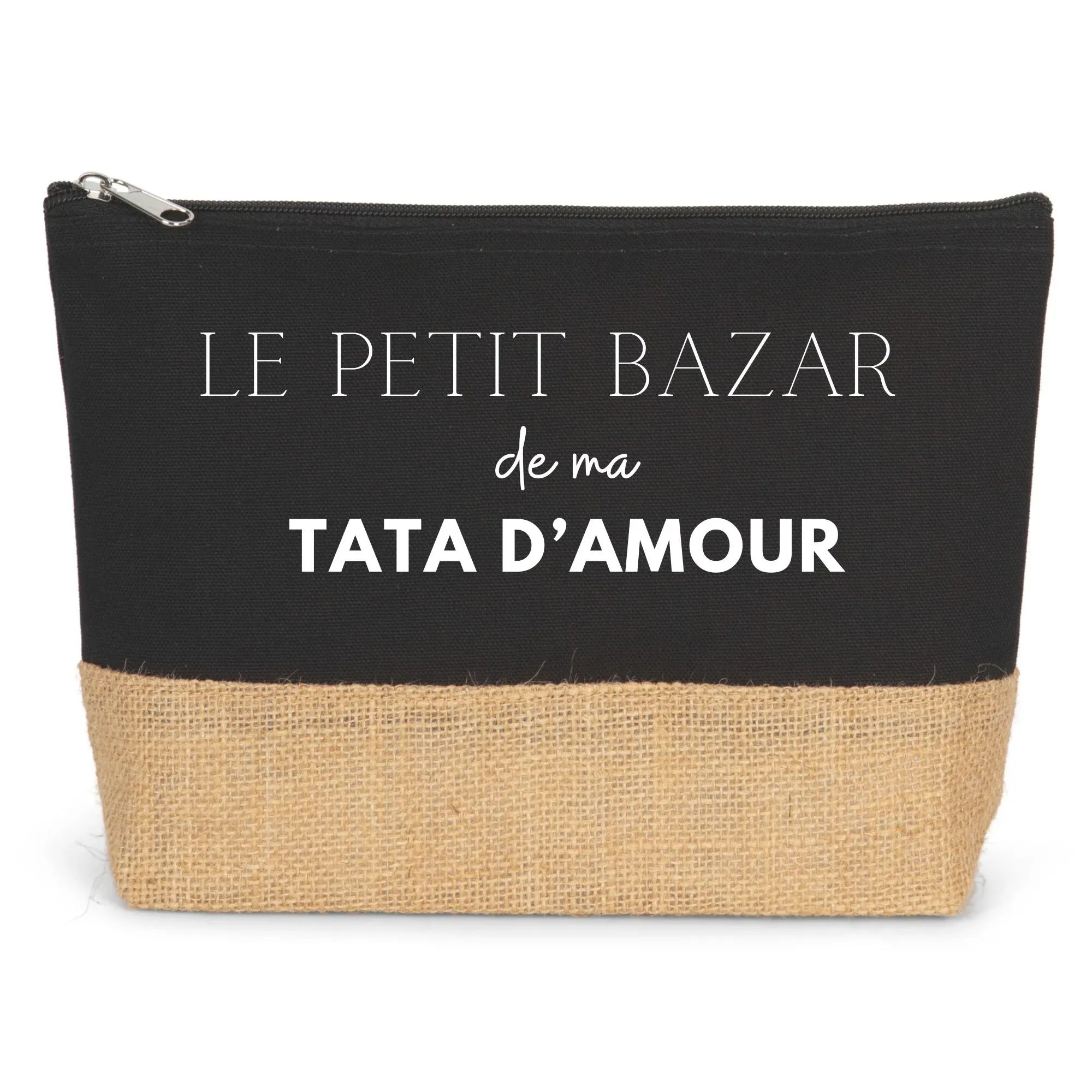 Offrez à votre tata d’amour un cadeau personnalisé et pratique avec cette pochette le Petit Bazar de ma Tata d’Amour, idéale pour ranger des cosmétiques.